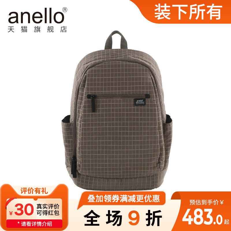 新品anello旗舰店撞色格纹复古电脑双肩背包学生休闲大容量书包