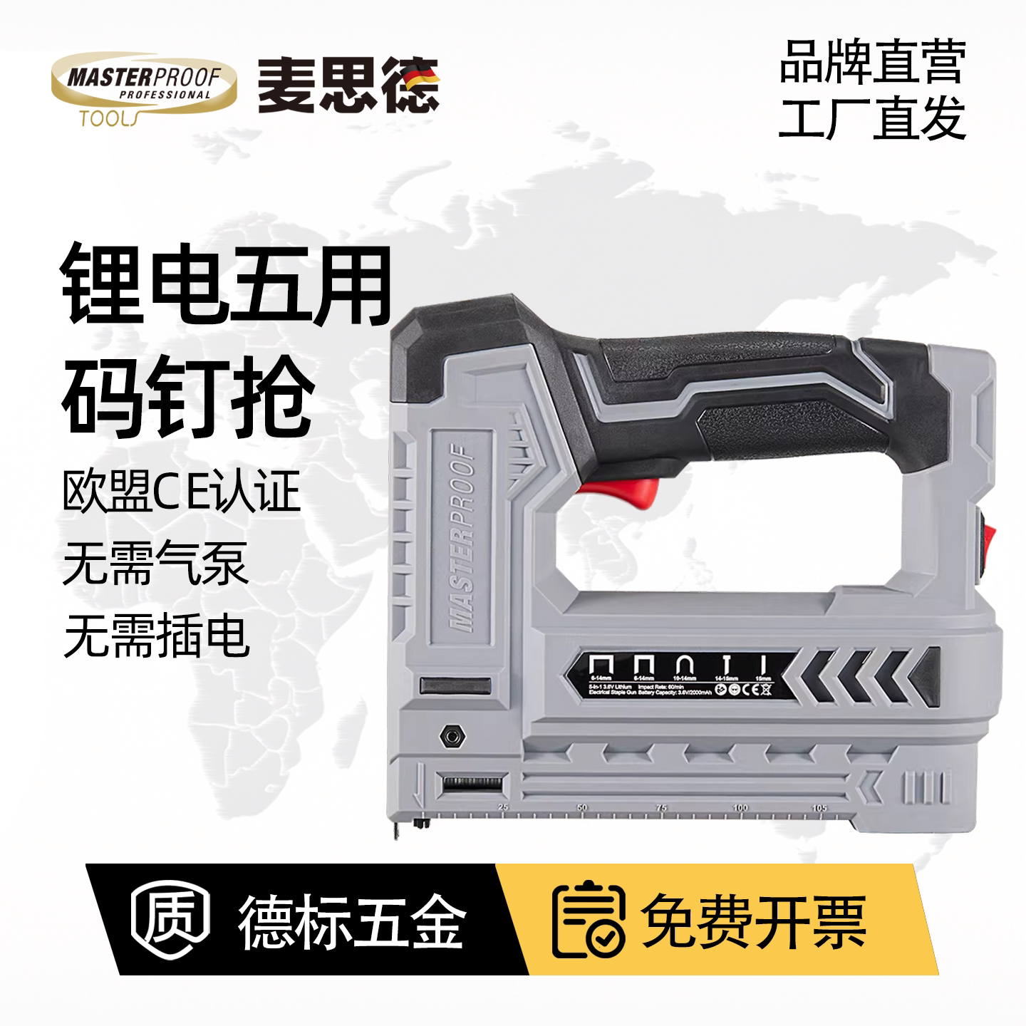 麦思德五用锂电电动码钉枪排钉抢门钉枪直钉枪射枪钉枪门型钉枪钉