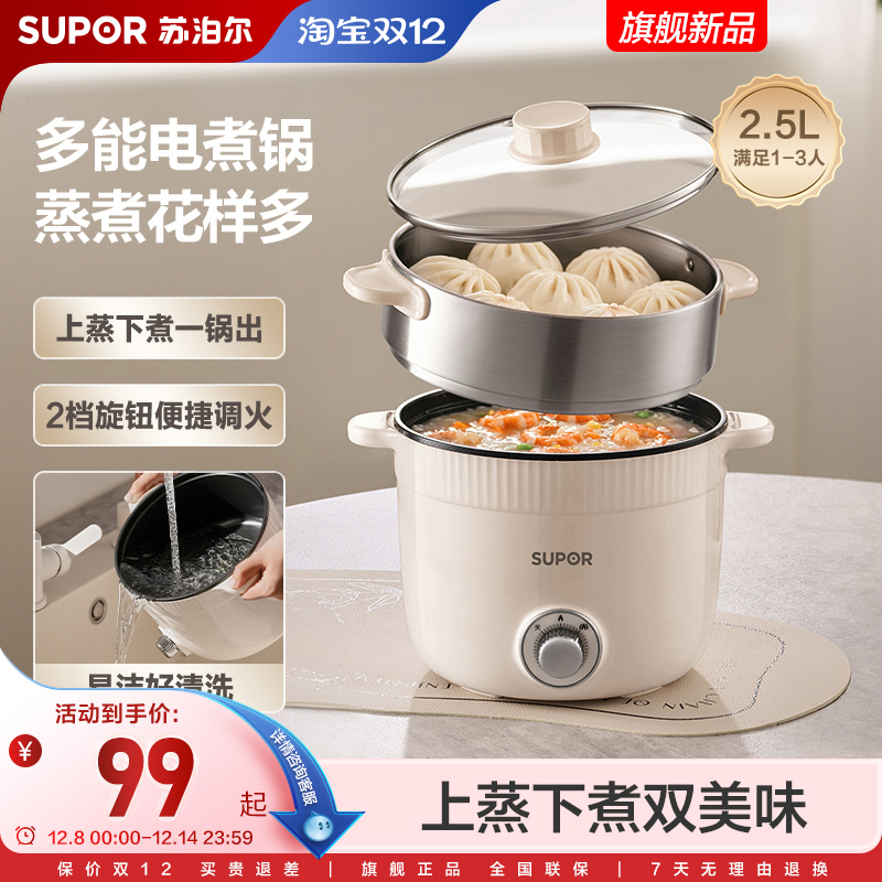 苏泊尔电煮锅家用多功能小型电火锅蒸锅宿舍学生锅泡面迷你烹饪机