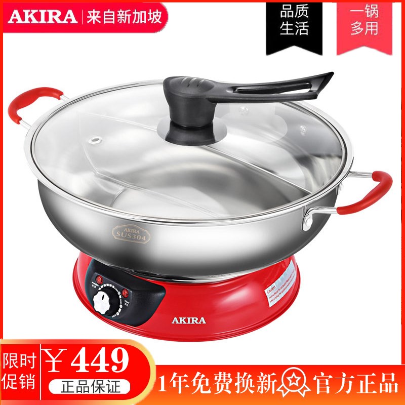 爱家乐鸳鸯锅家用火锅锅304不锈钢分体式电热涮煮锅大容量4-6-8人