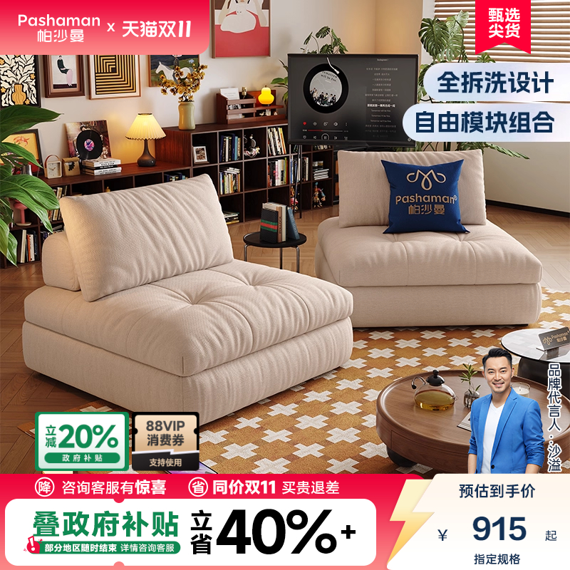 帕沙曼 布艺沙发客厅小户型复古风全拆洗模块组合沙发单人可移动