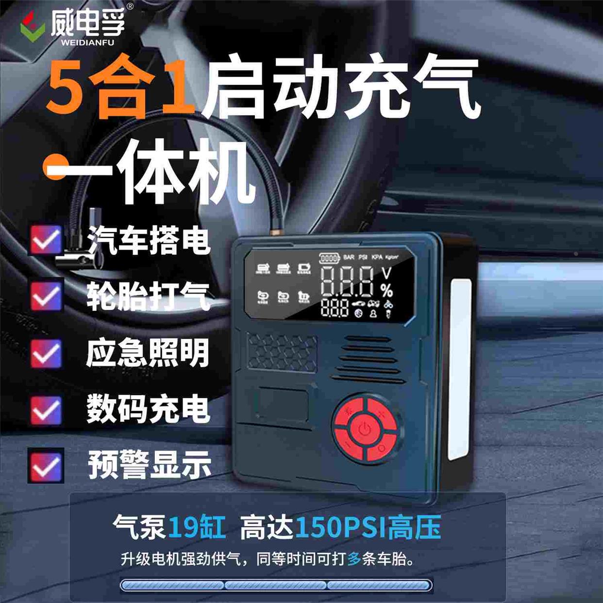 汽车应急启动电源车载充气泵一体机紧急电瓶强启多功能搭电宝神器