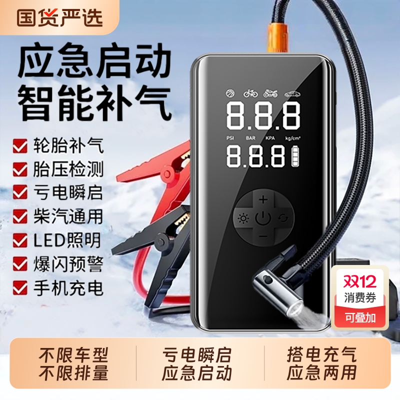 汽车应急启动电源充气泵一体机搭电打火神器大容量多功能12v智能