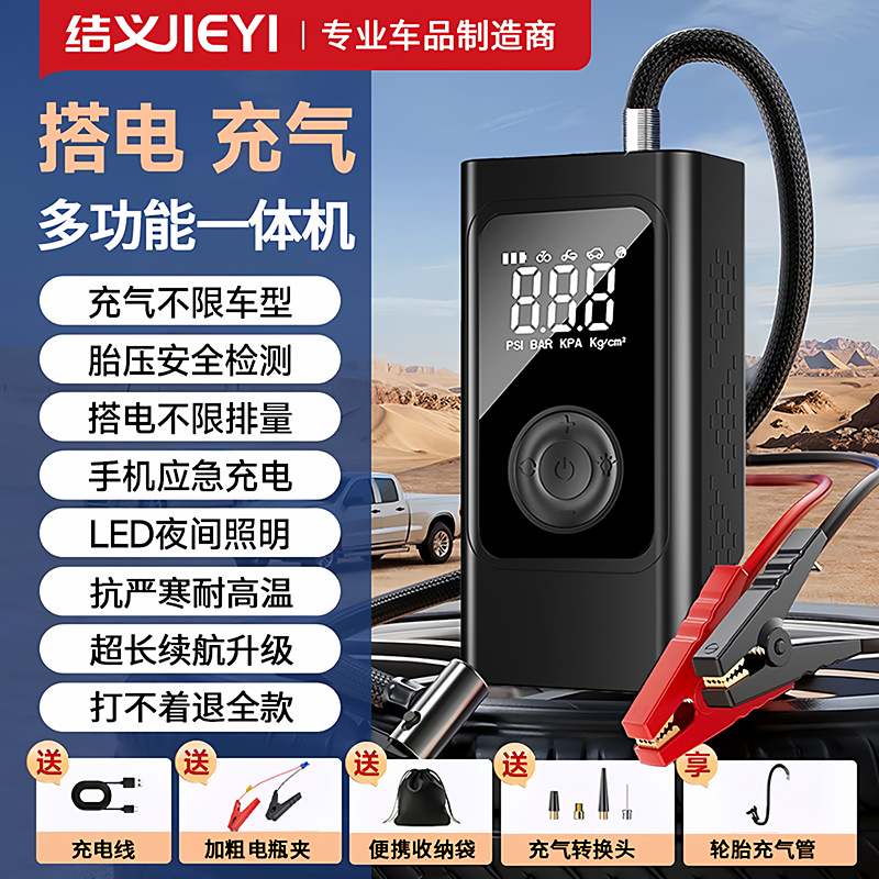 汽车应急启动电源车载充气泵两用智能一体机大容量多功能搭电神器