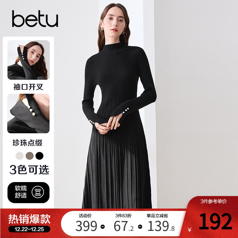 betu百图半高领修身显瘦针织裙连衣裙2025年冬季新款气质毛衣裙