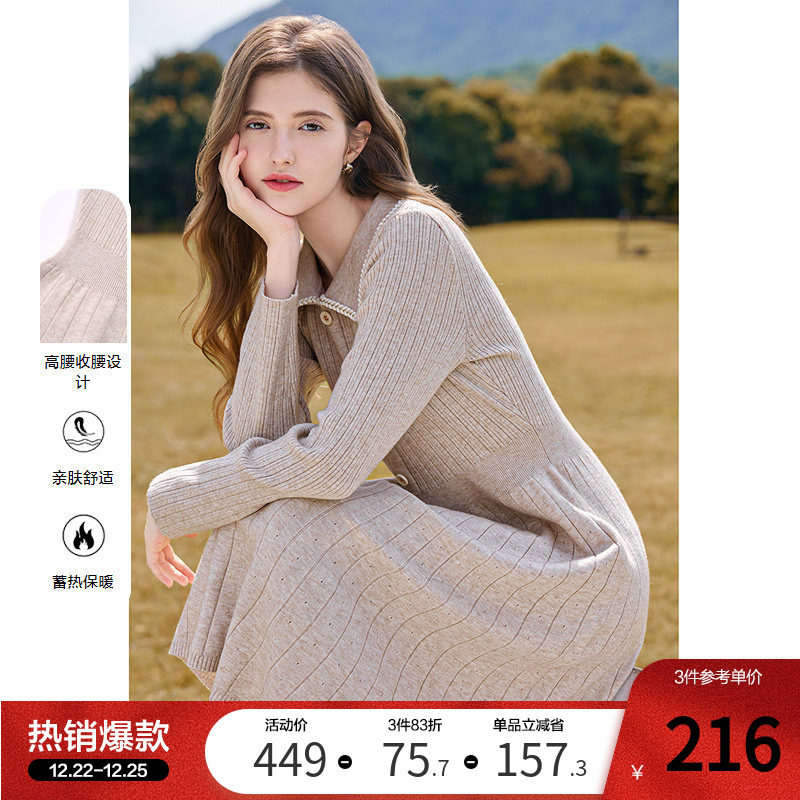 远家羊毛混纺毛衣连衣裙修身休闲内搭打底针织裙子秋新H-130 限量