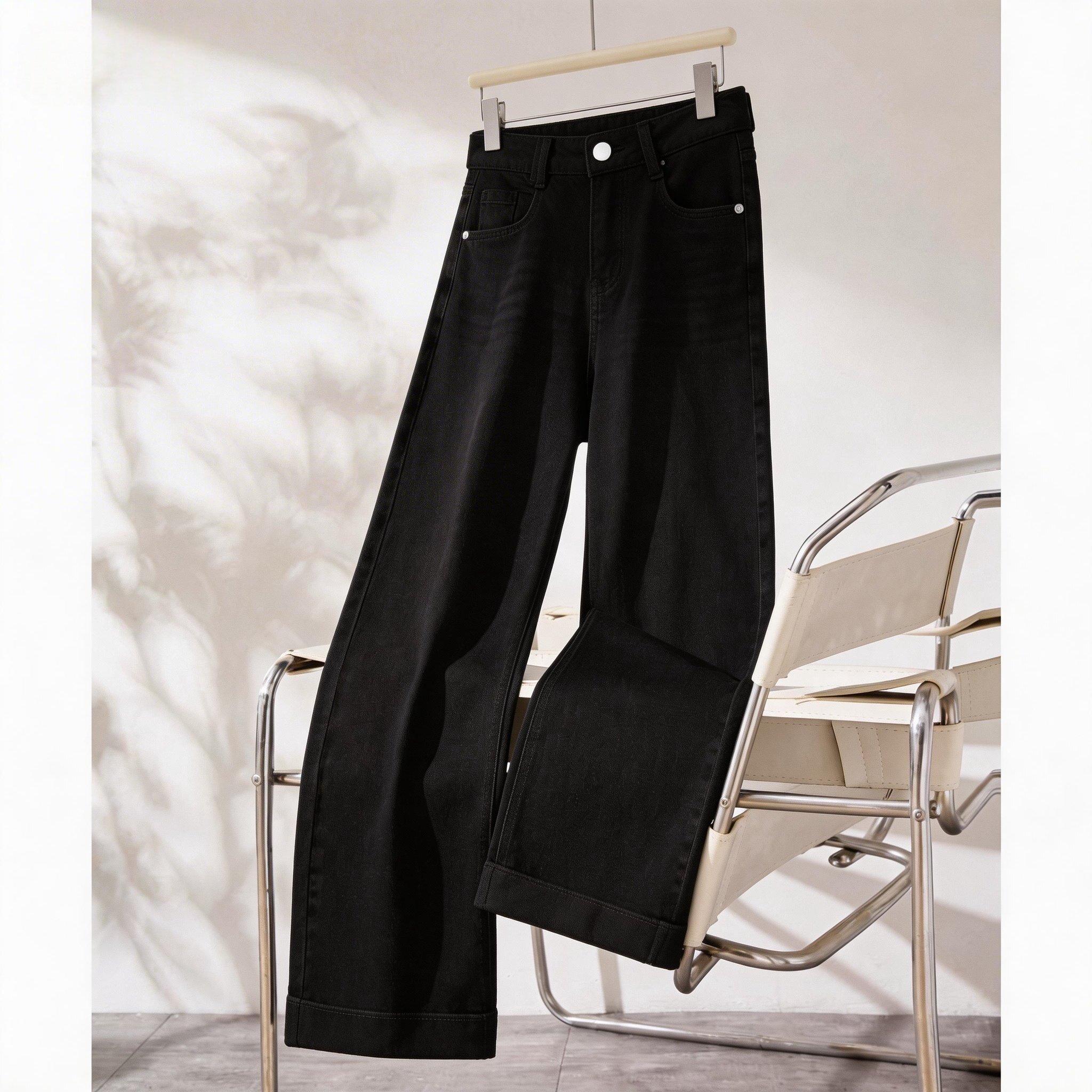 HX2G九分直筒阔腿裤女2025秋季新款宽松显瘦高腰弹力气质牛仔裤子