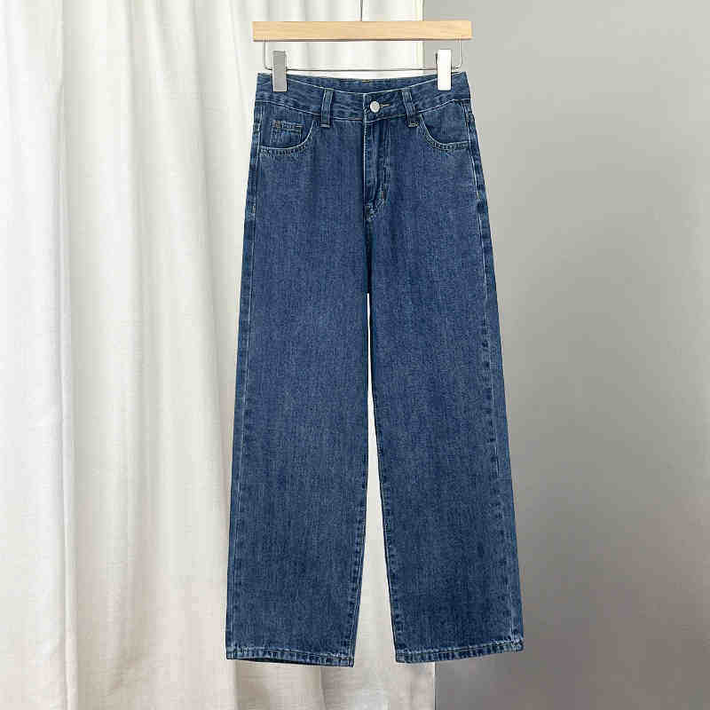 春夏款高棉九分宽松牛仔裤女韩国蓝百搭学院风基础款小个子阔腿裤