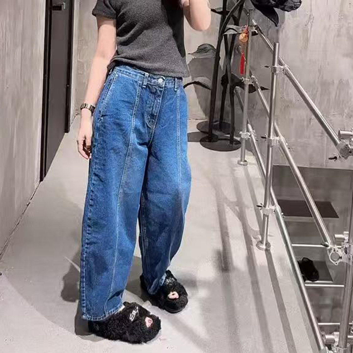 - 宽松牛仔 高腰