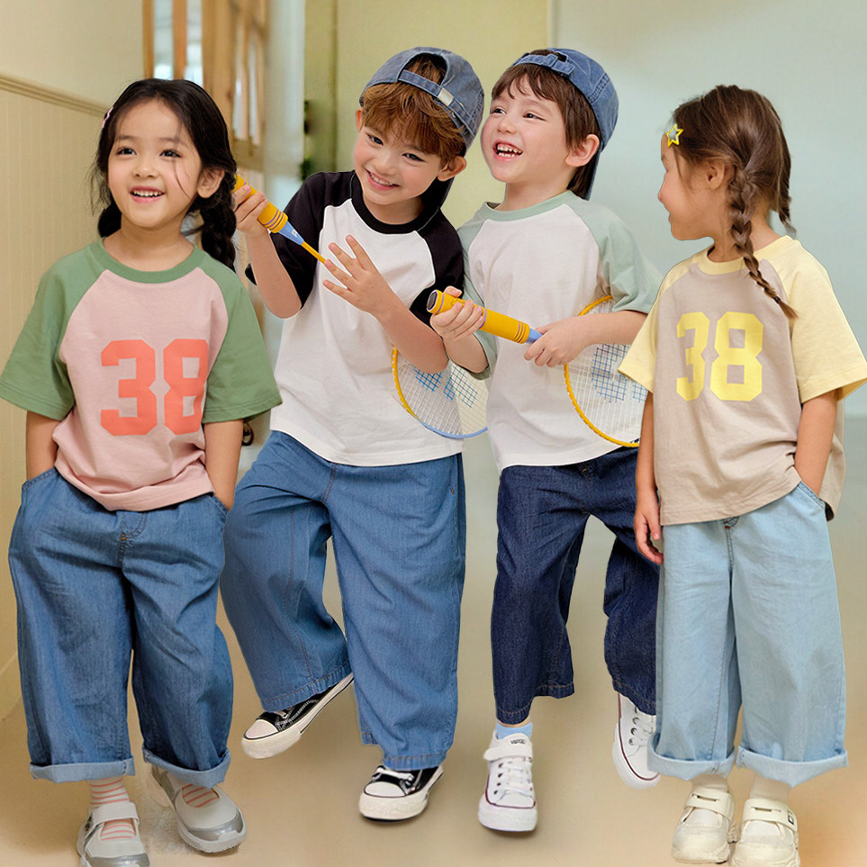 韩国儿童裤子男童牛仔裤女童九分裤水洗棉阔腿宽松宝宝长裤喇叭裤