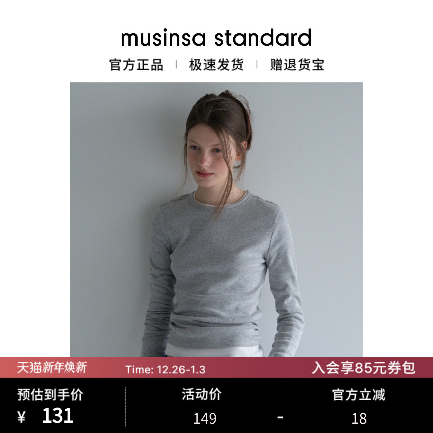 韩国25秋冬女士简约纯色修身显瘦百搭长袖T恤musinsa standard