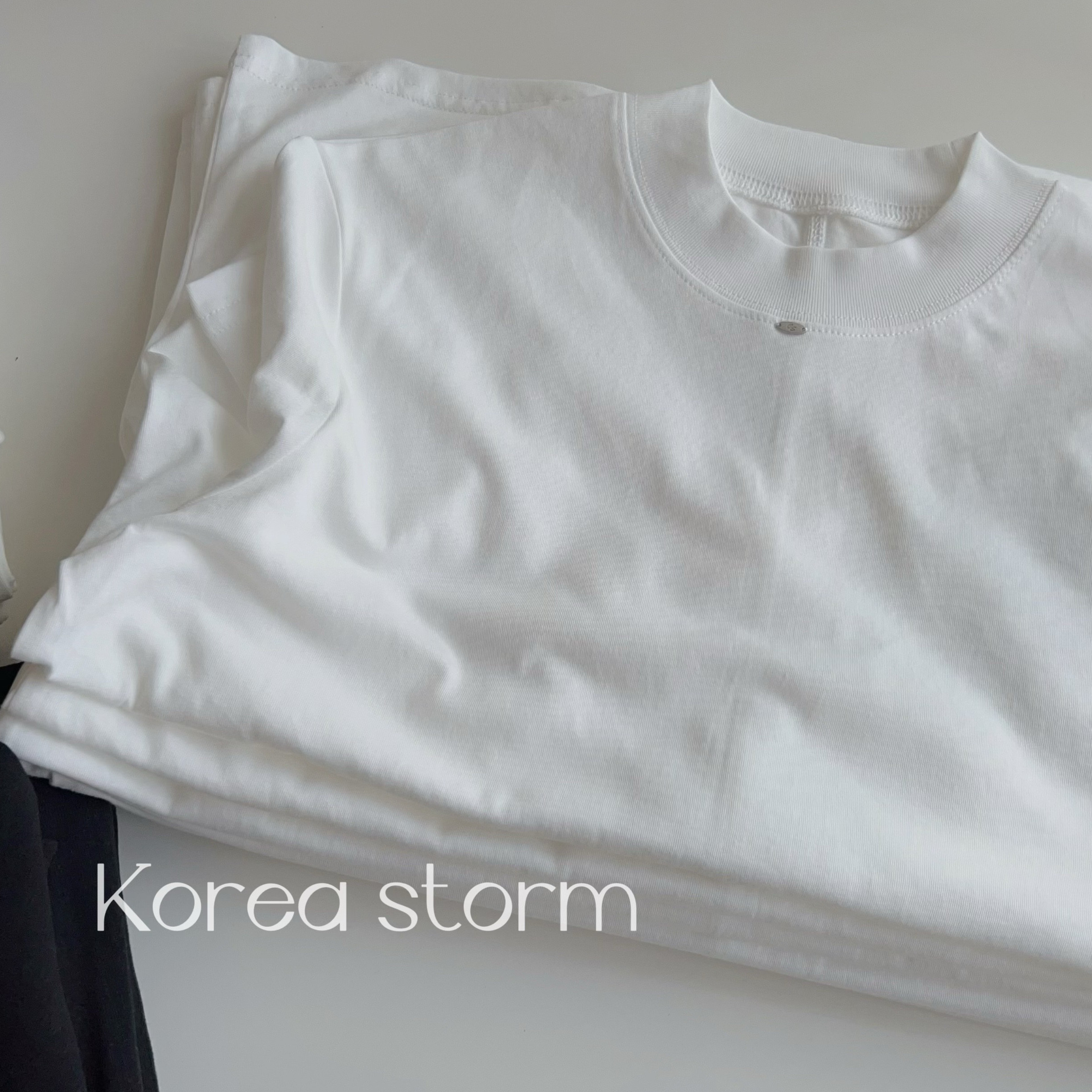 韩国单ONE领口小铁标后背明线 半高领软糯亲肤纯棉打底 T恤 上衣