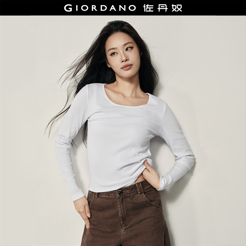 [卢正义韩国明星款]佐丹奴长袖T恤女新款圆领修身打底衫05325863