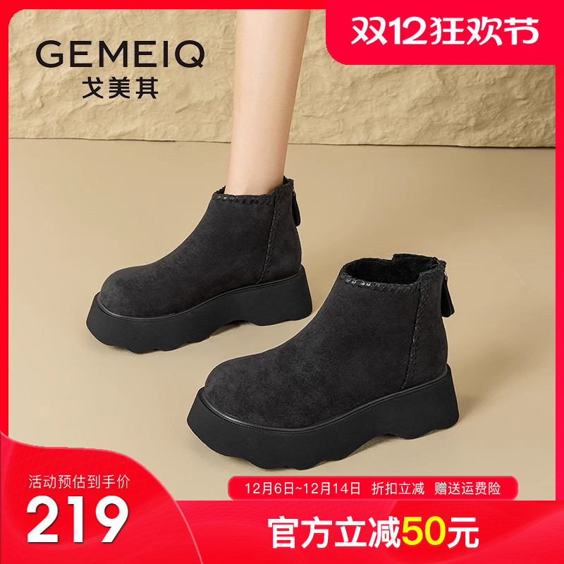 戈美其厚底勃肯鞋女马丁靴2025冬季新款加绒棉鞋增高雪地靴短靴女