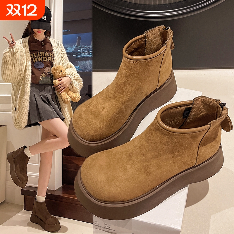 2025新款粗跟厚底包邮圆头羊猄绒面防滑耐磨个性女马丁靴533