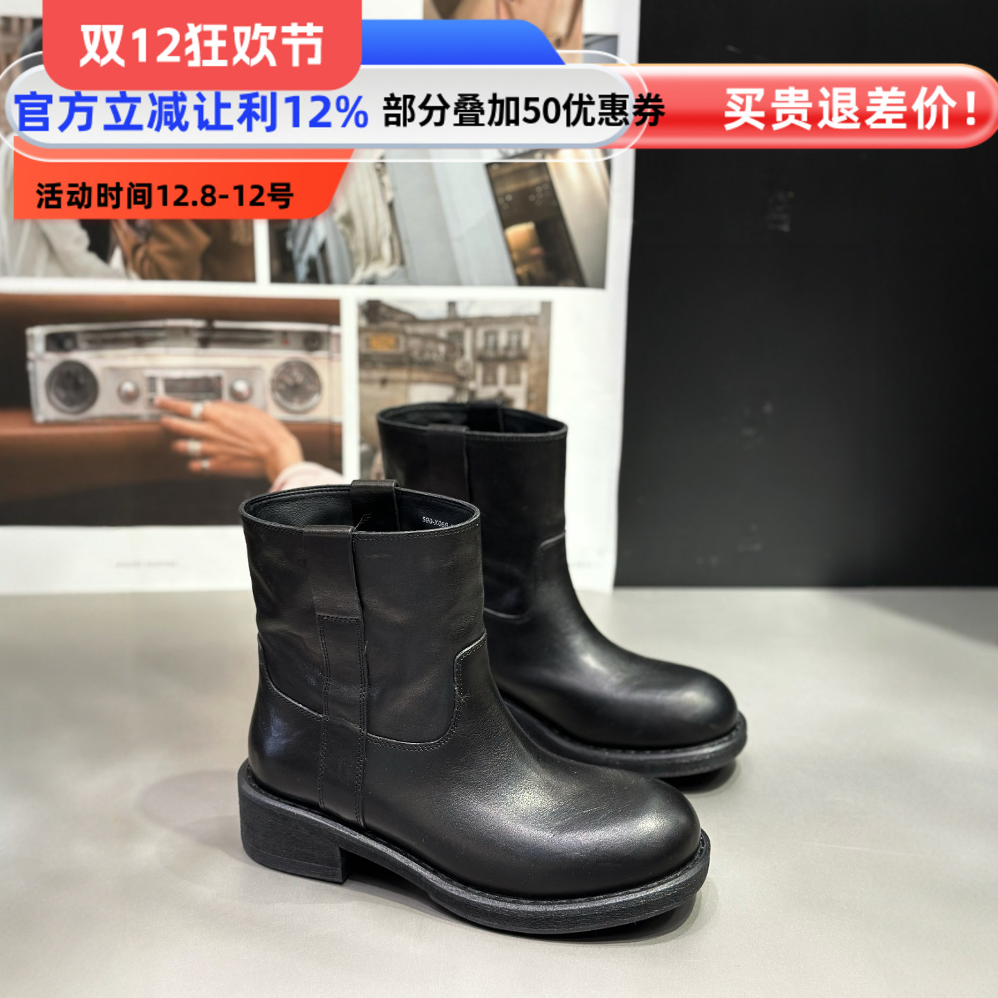Artmu阿木牛皮靴子中筒靴女马丁靴女款2025新款骑士靴双扣西部靴