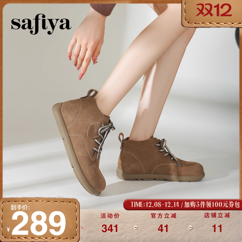 Safiya索菲娅美拉德复古英伦百搭休闲勃肯系带平底小短靴女马丁靴