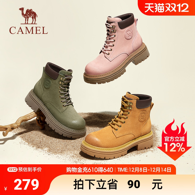 百丽厚底复古英伦风马丁靴女冬季新款工装靴加绒短靴子B9H1DDD4