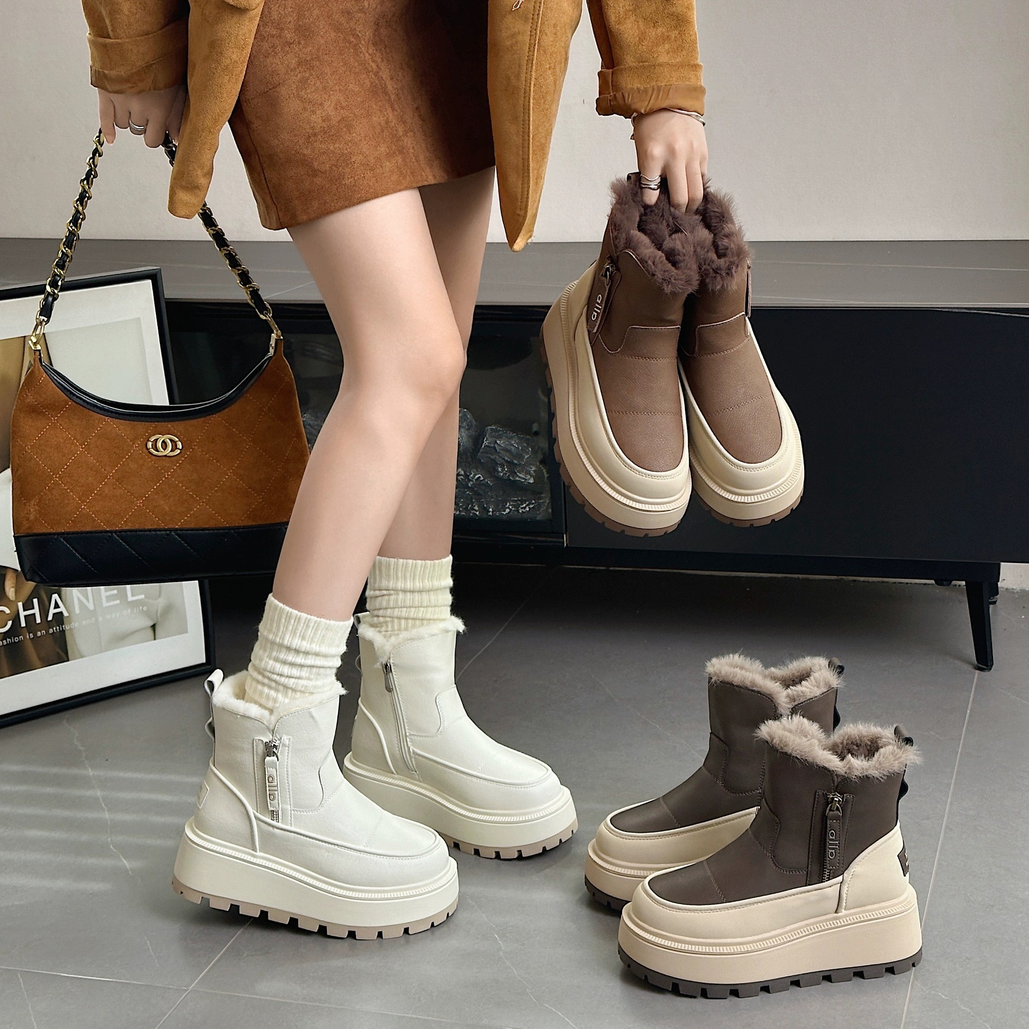 SGIRL TWTW推荐2025冬季爆款加绒保暖短靴厚底棉鞋雪地靴女马丁靴