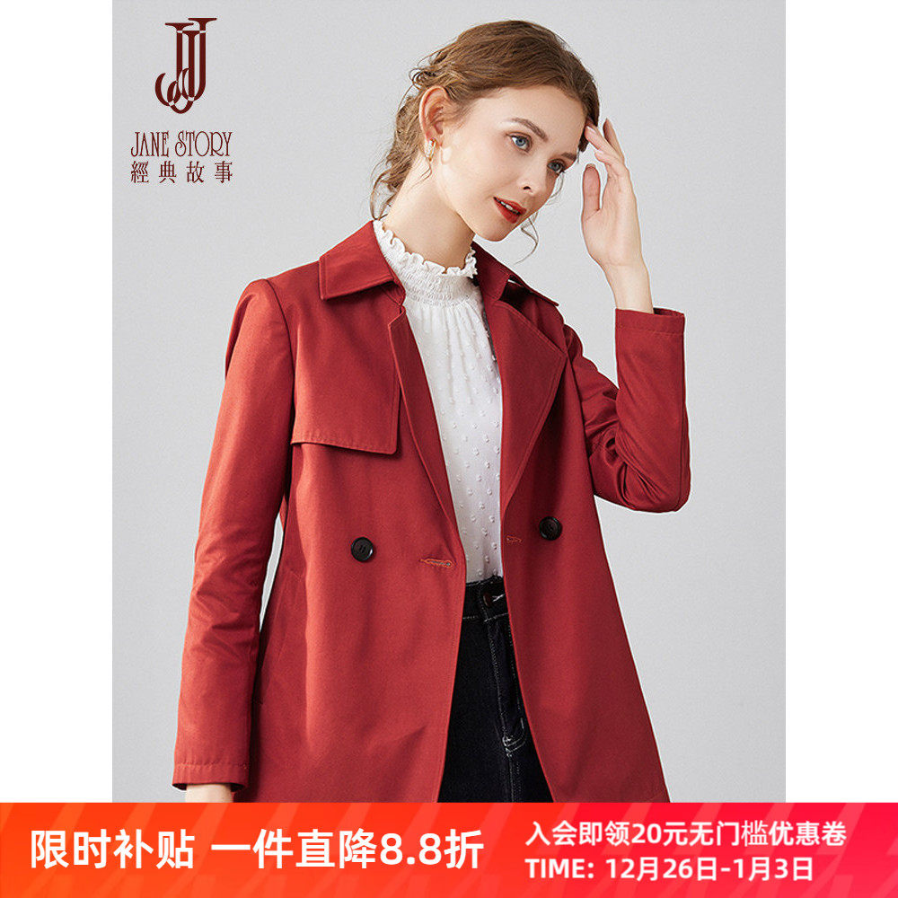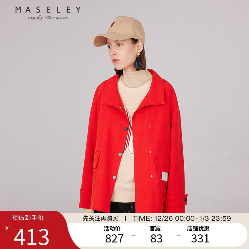Maseley/玛塞莉短风衣春季新款休闲时髦红色减龄通勤外套女