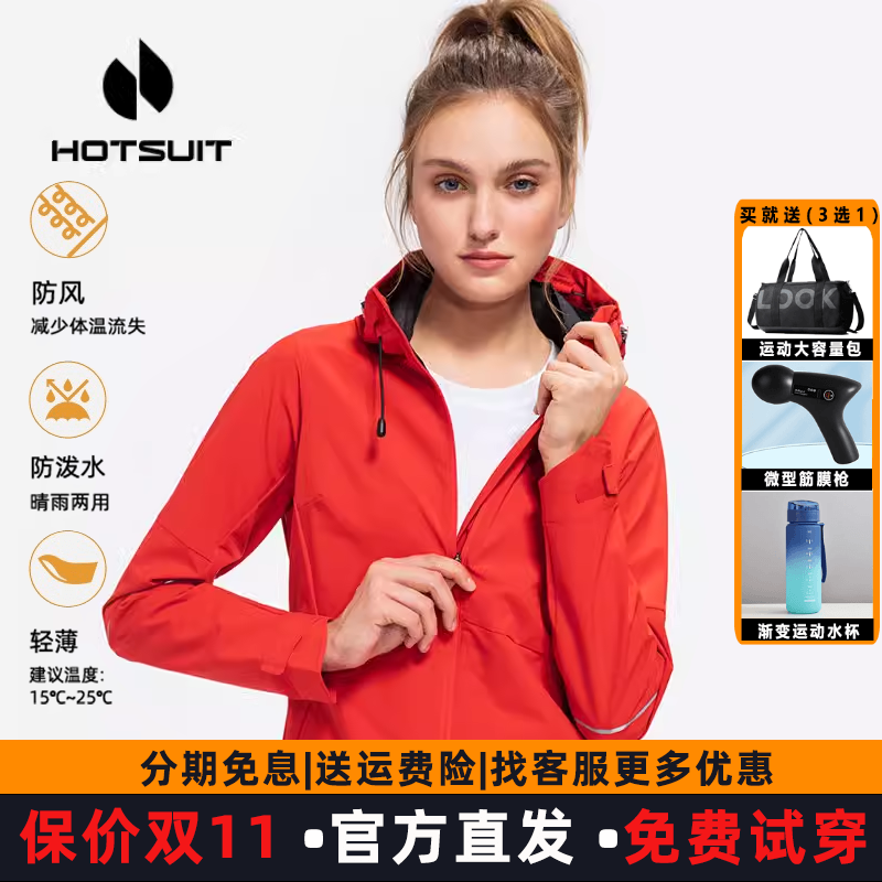 hotsuit后秀运动风衣女2025春秋新夹克防风长袖外套休闲保暖红色