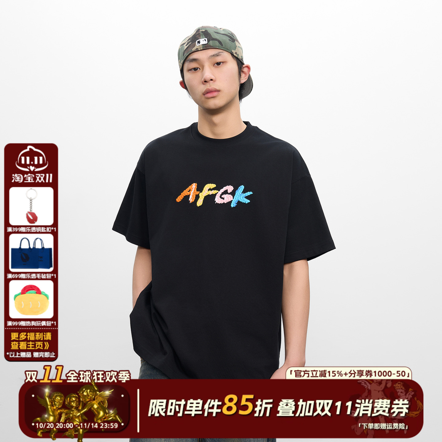 亿万少年BUFU国潮牌美式字母刺绣高街短袖T恤男女夏季情侣装半袖