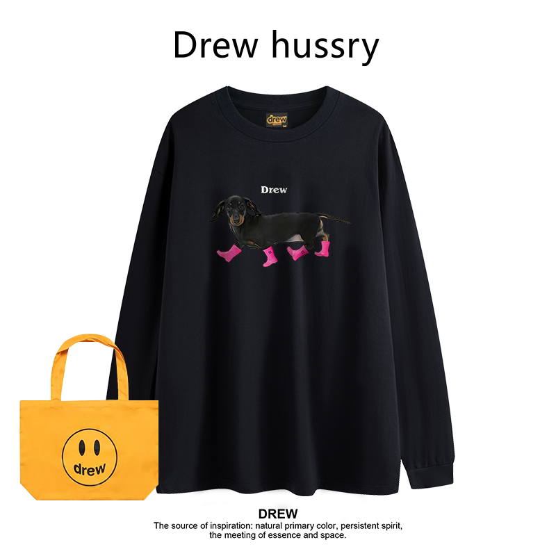 Drew美式潮牌赵露思同款腊肠狗印花打底衫纯棉长袖t恤夏季情侣装