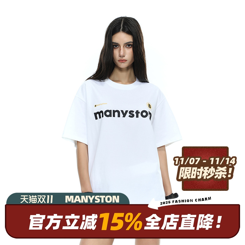 MANYSTON美式280g重磅短袖t恤女夏季情侣装宽松纯棉半袖体恤上衣