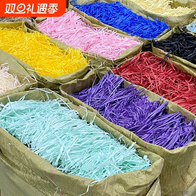 礼品盒拉菲草填充物碎纸条装饰材料结婚喜糖礼盒碎纸丝水果填充纸