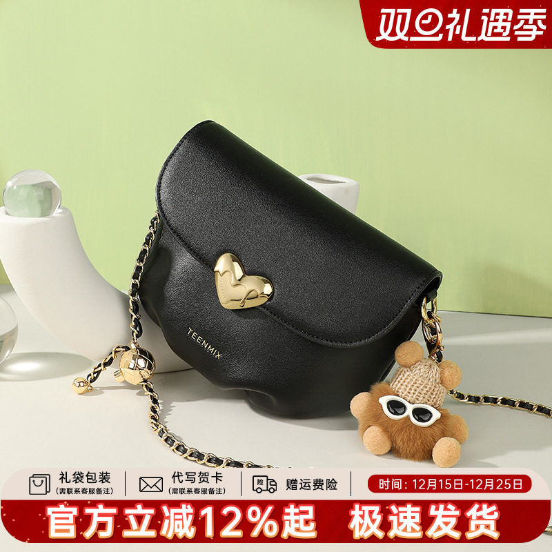 天美意真皮链条包女2025新款百搭休闲单肩斜跨包牛皮云朵包小方包