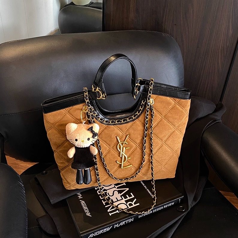 YOCAMU小香风菱格链条包女麂皮托特包大容量高级轻奢小众设计包包