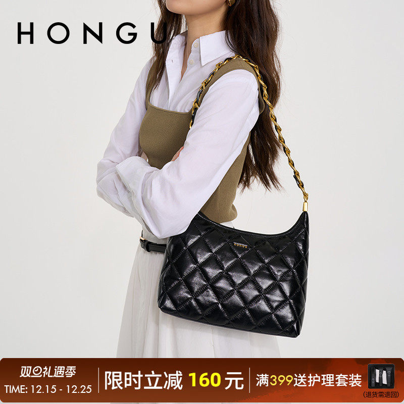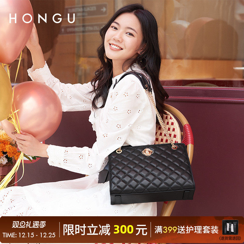 HONGU/红谷秋冬新款菱格链条包女百搭大容量上班通勤托特包单肩包