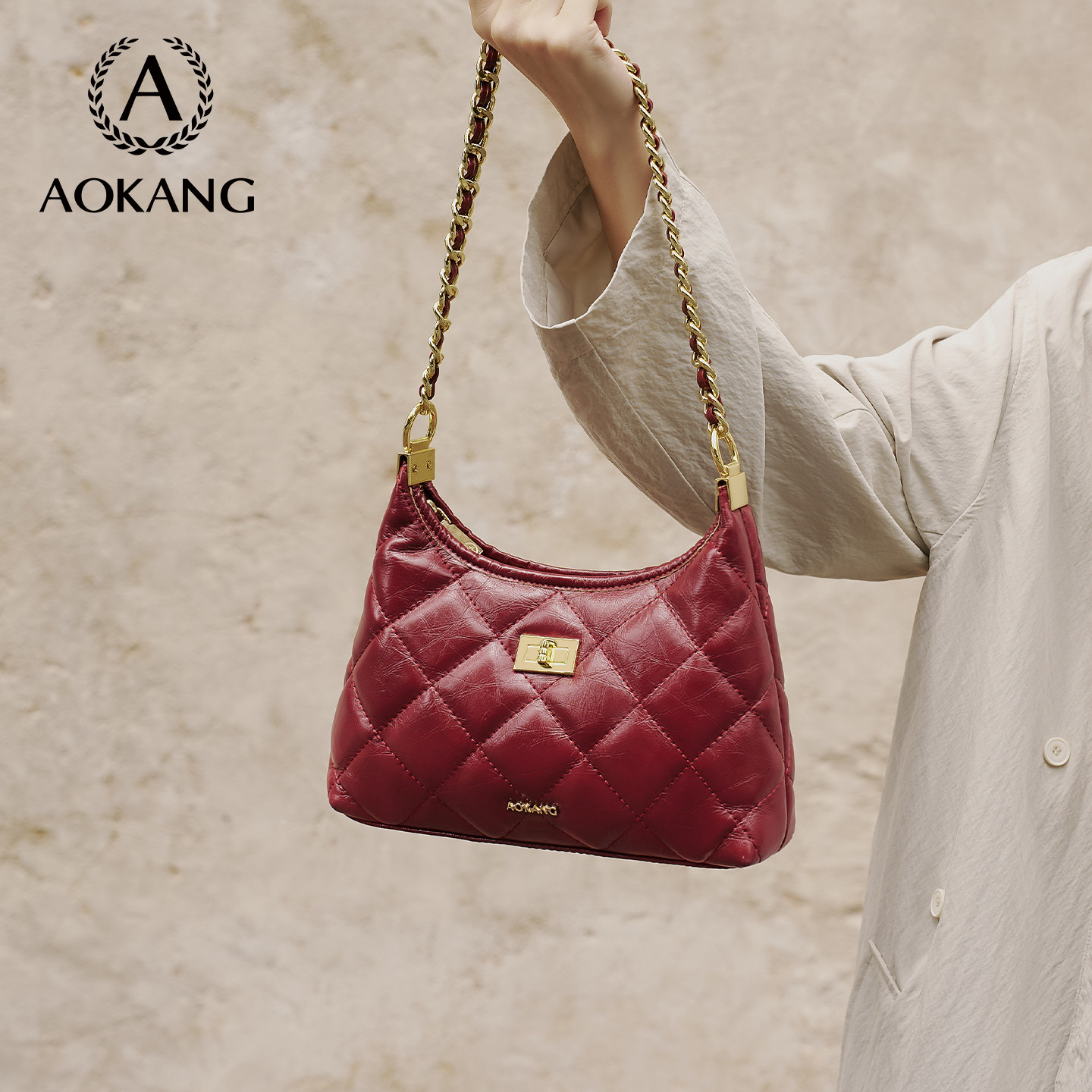 奥康菱格腋下包2025新款高级感链条包女式单肩包大容量通勤斜挎包