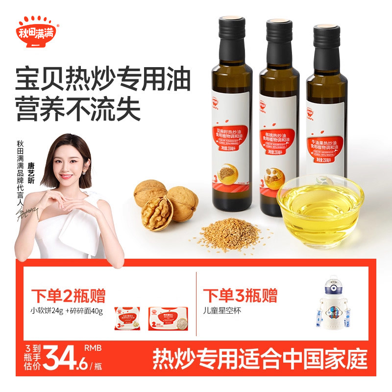 秋田满满核桃油热炒油牛油果油亚麻籽家用,送宝宝婴幼儿童辅食谱