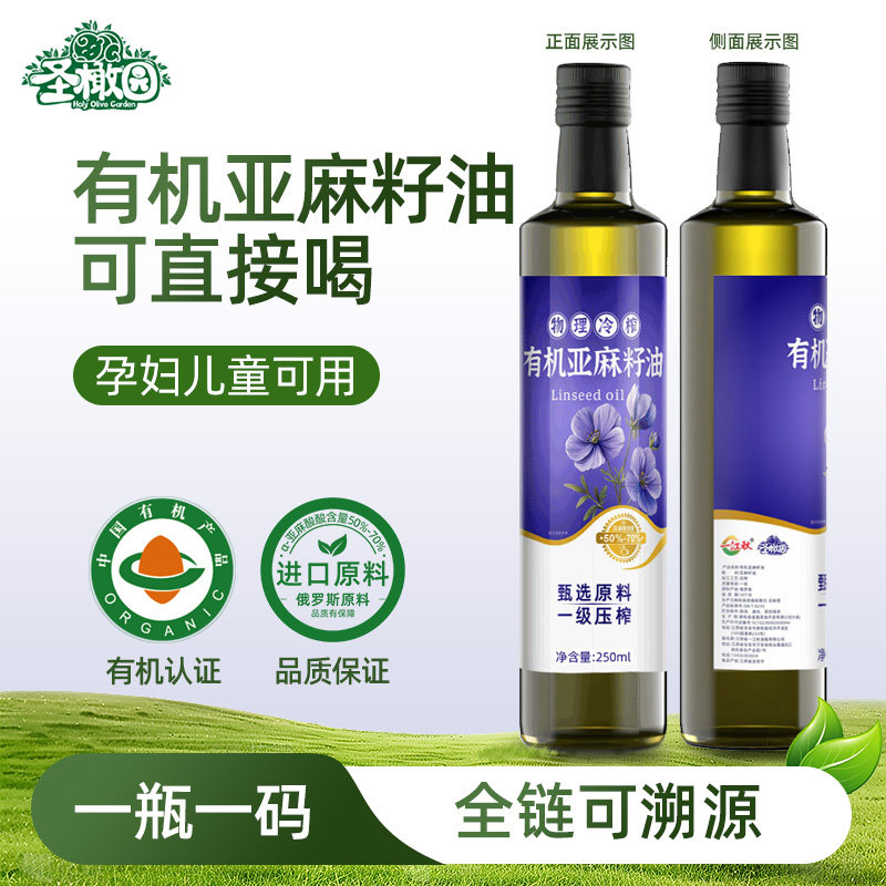 纯亚麻籽油一级冷榨有机孕妇纯食用油天然亚麻油直接喝官方旗舰店