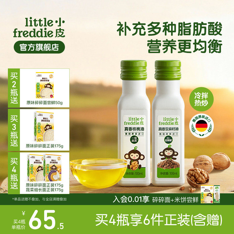 小皮进口核桃油亚麻籽油巴旦木油高铁米粉儿童婴幼儿辅食宝宝热炒