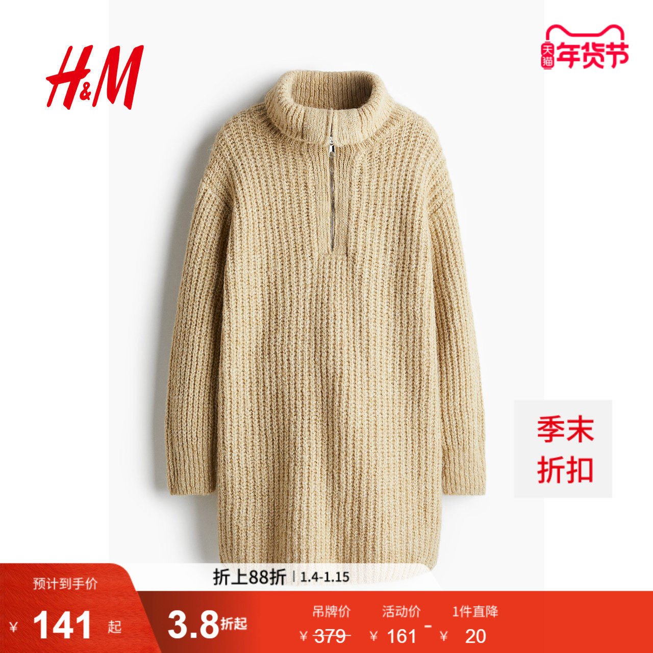 针织连衣裙女2025秋冬新款小个子中长款宽松半高领打底加绒毛衣裙