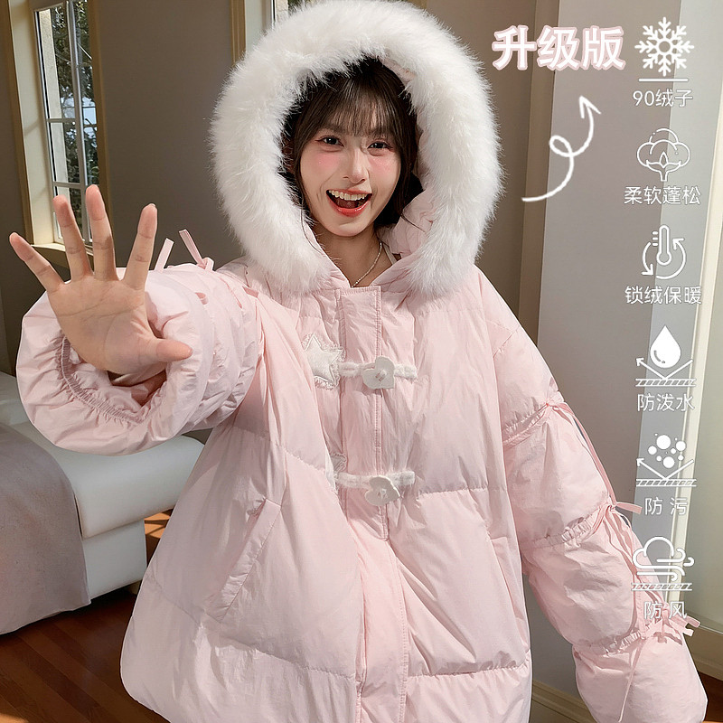 森女部落甜美风宽松羽绒服女2025新款秋冬立耳连帽设计感百搭外套