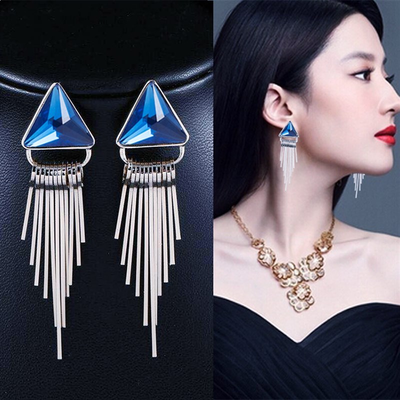 网红耳环欧美个性流苏女款气质韩国水晶潮人简约耳扣短发耳钉耳钩