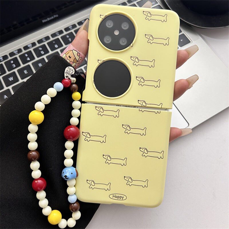 趣味腊肠狗适用华为pocket2折叠屏手机壳vivoX Flip手链条三星zflip6肤感oppofindn3flip女款小米mixflip荣耀
