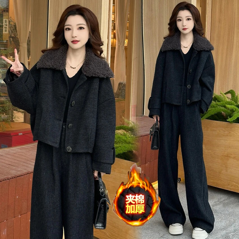 - 阔腿裤套装女冬两件套