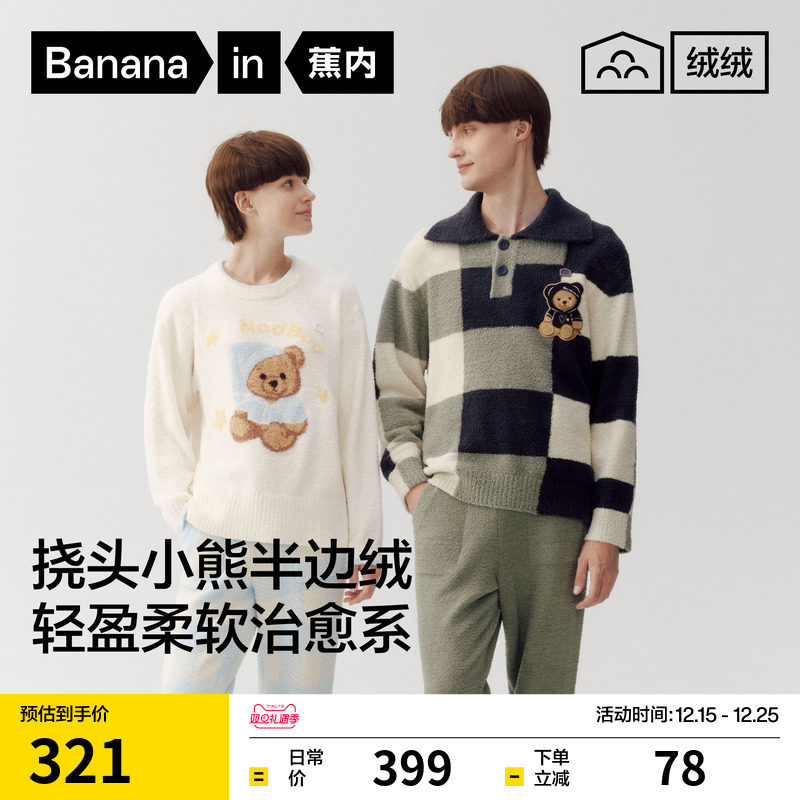 蕉内绒绒520Home男女士保暖睡衣挠头小熊半边绒加厚家居套装冬季