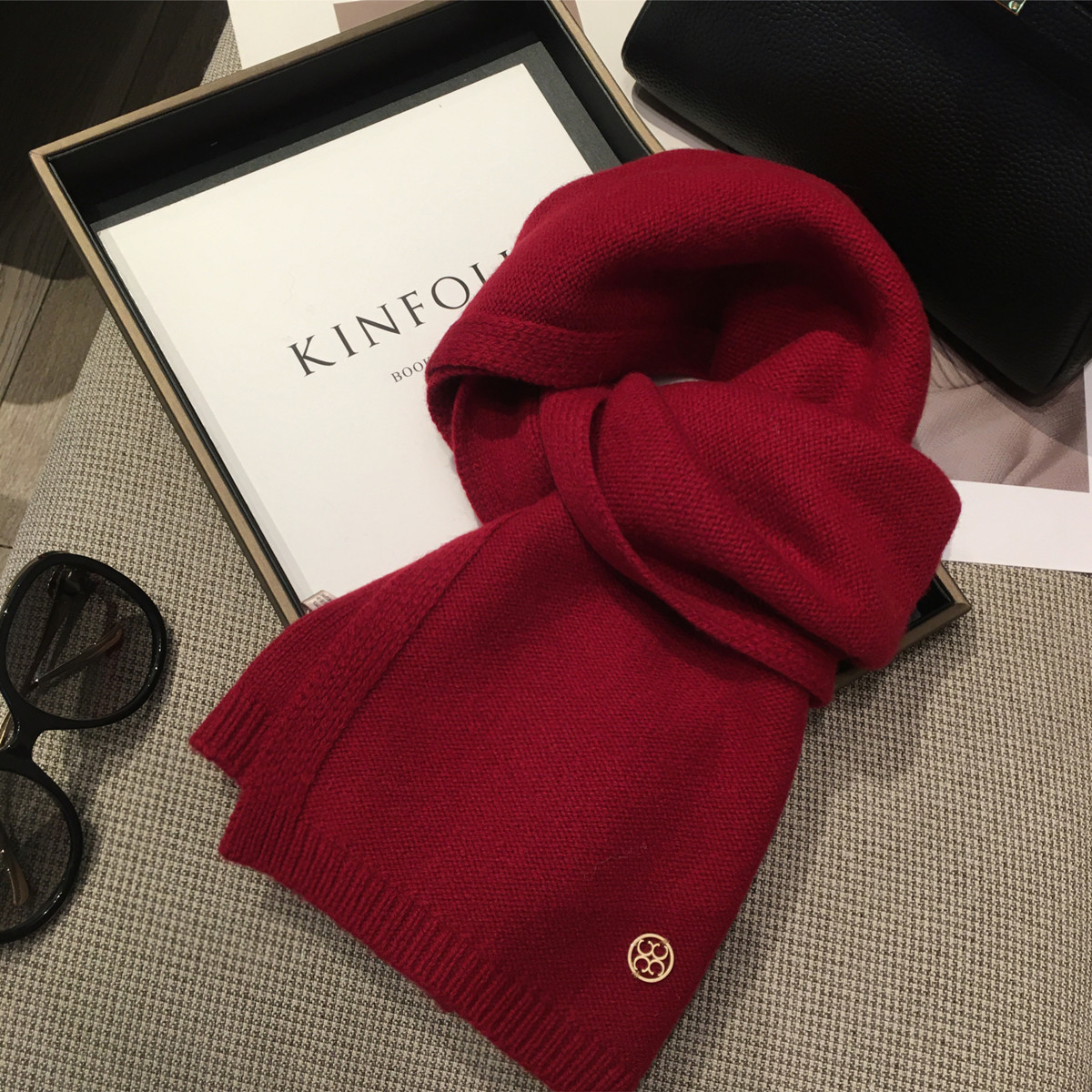 韩国冬季新款金属标设计100%纯羊毛围巾长款女士披肩户外保暖围脖