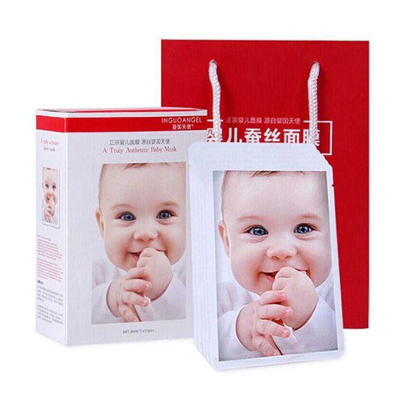 正宗婴儿蚕丝面膜婴国天使颜膜玻尿酸补水保湿收缩毛孔正品10片装