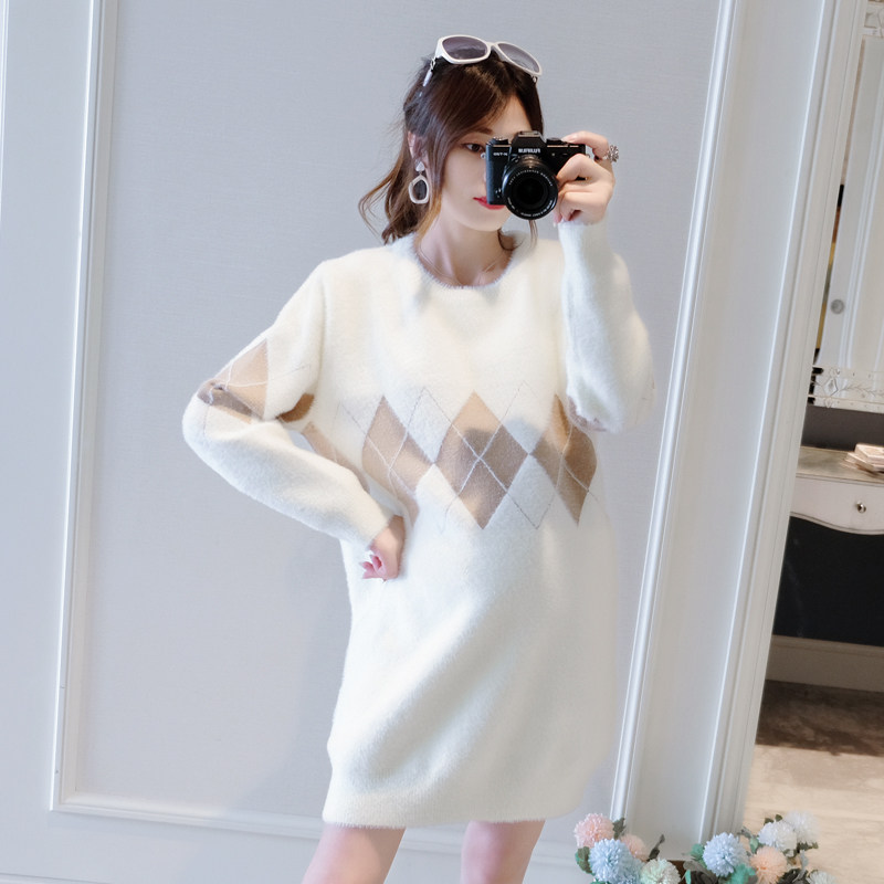 孕妇冬装2021年新款女套头毛衣短款冬天加绒加厚孕妈妈连衣裙秋冬
