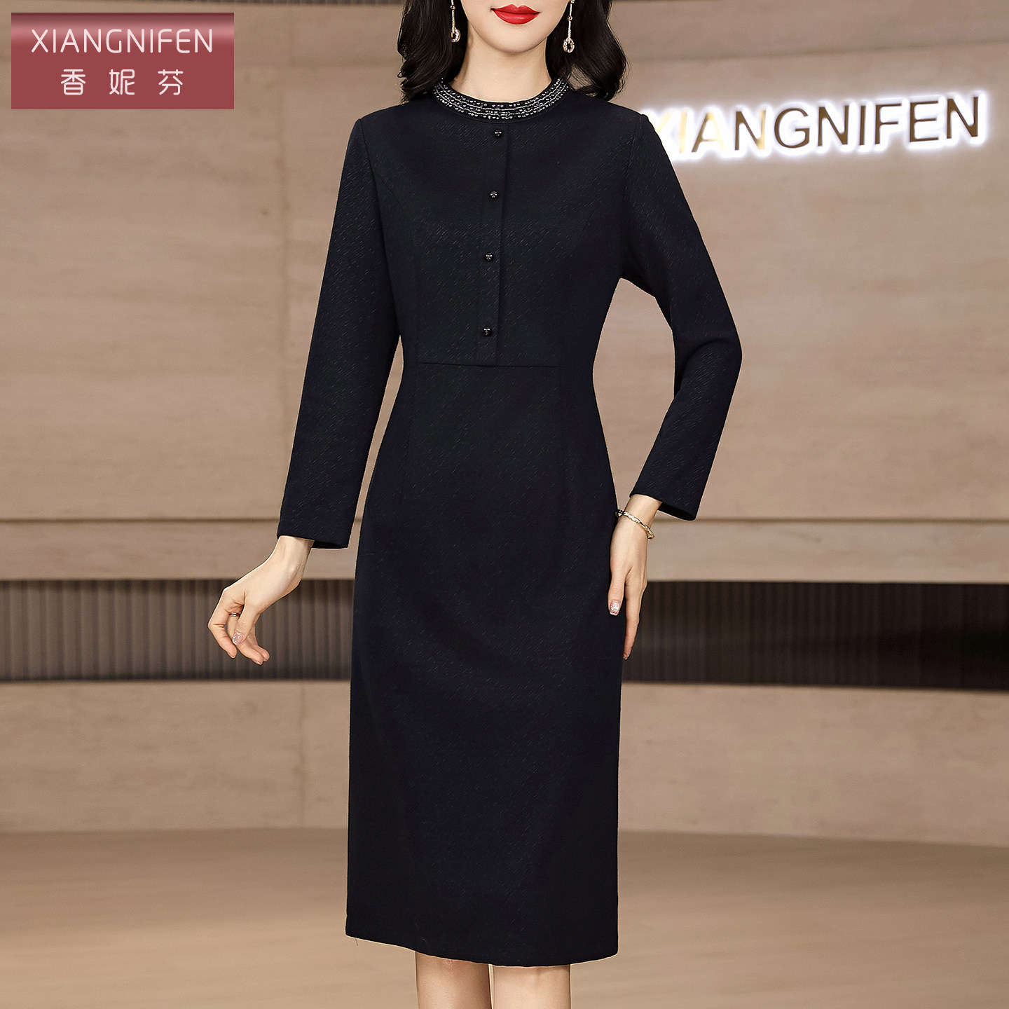 香妮芬气质女神范高级感妈妈款连衣裙2025新款秋季高端精致长袖裙