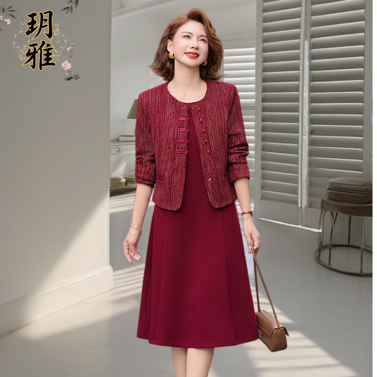 速发中年妈妈连衣裙秋装新中式202风新裙中老年春秋外套国4套装款