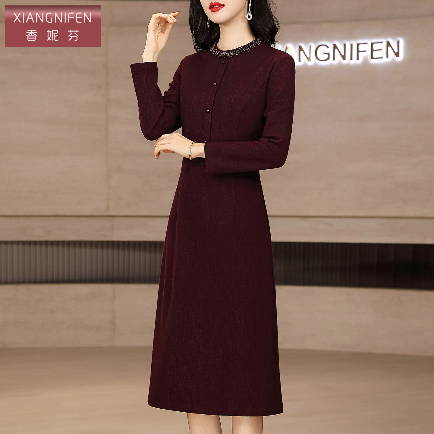 中年妈妈连衣裙秋冬季2025新款大码显瘦品牌贵夫人中长款妇女裙子
