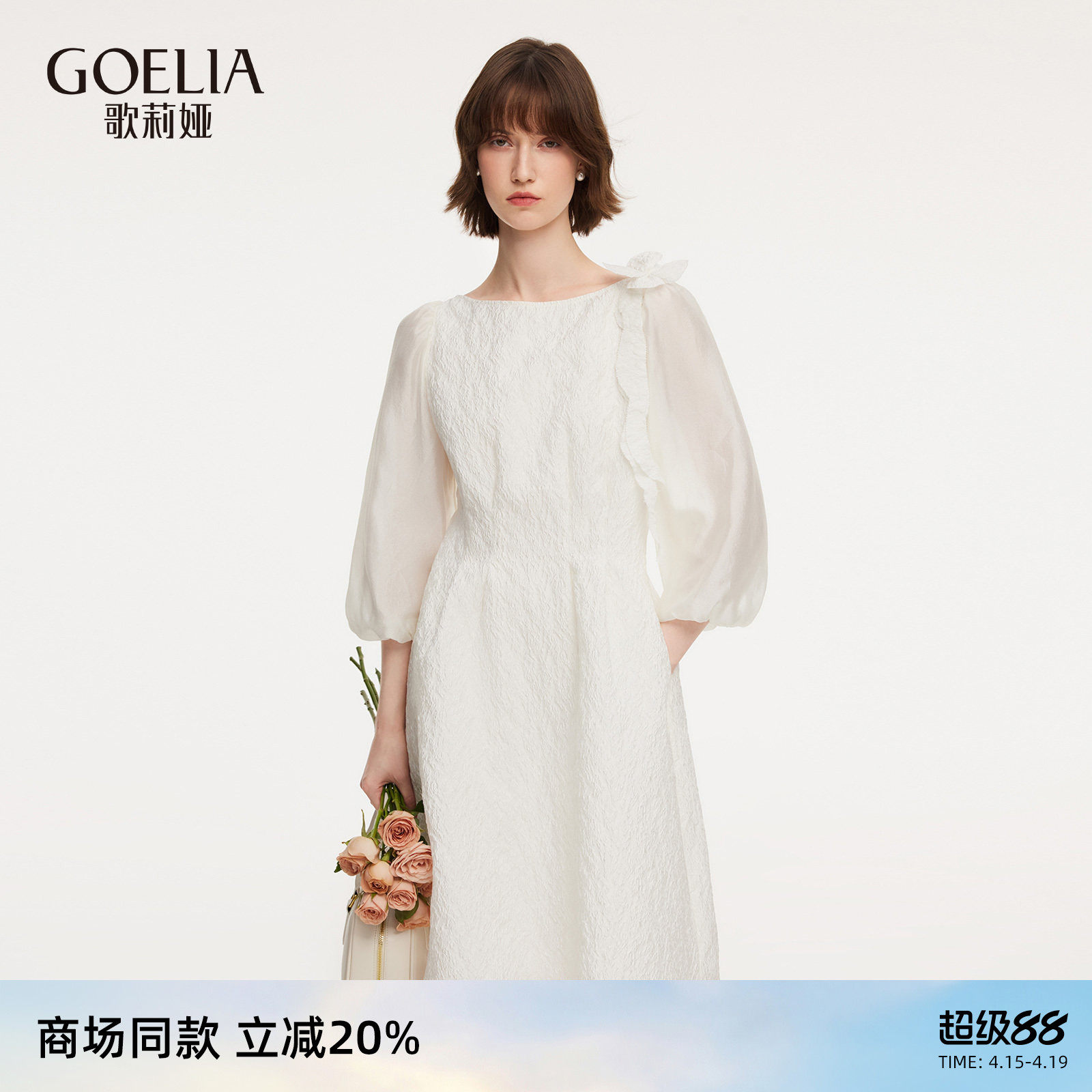 歌莉娅提花连衣裙女2026新款春季出席重要场合巨好看法式白色裙子