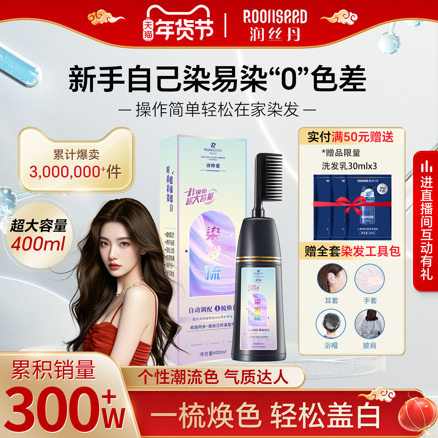 - 一梳彩染发膏遮白发